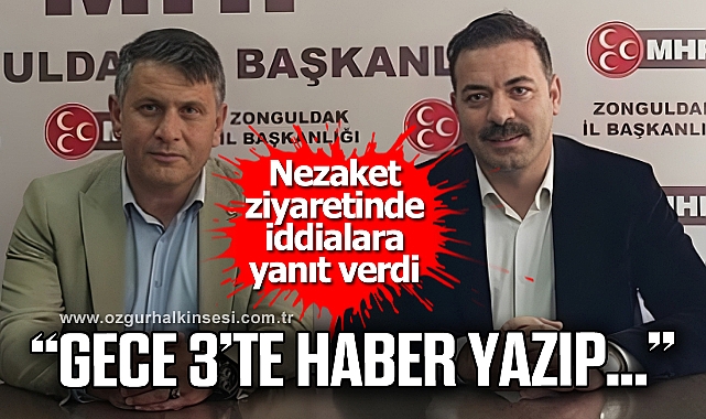 AKP İl Başkanı Mustafa Çağlayan, MHP İl Başkanlığına seçilen Mustafa Öztürk’ü makamı da ziyaret etti. Ziyaret esnasında kendisiyle ilgili soruları yanıtlayan MHP İl Başkanı Mustafa Öztürk, Zonguldak Belediye Başkanı Selim Alan’ın MHP Genel Başkanı Devlet Bahçeli’yi ziyaretinin ardından Belediyeden iş aldığı yönündeki haberleri yalanlayarak, "Gece saat 03.00’te haber yazıp sabah telefonları açmamak olmaz" dedi. Hakkında çıkan haberleri “abuk-subuk” olarak değerlendiren MHP İl Başkanı Mustafa Öztürk şunları söyledi: "Birkaç arkadaşımız benimle ilgili yanlış şeyler yazmış. Ciddiye almıyorum. Sağ gösterip sol vurmayacaklar. Karşımıza gelip adam gibi duracaklar. Vur-kaç yapmayacaklar. Vur kaç Osmanlı’da oluyordu… Dimdik diyecekler ki ; sen şu hareketi yapıyorsun! Gece saat 03.00’te haber yazıp sabah telefonları açmamak olmaz"