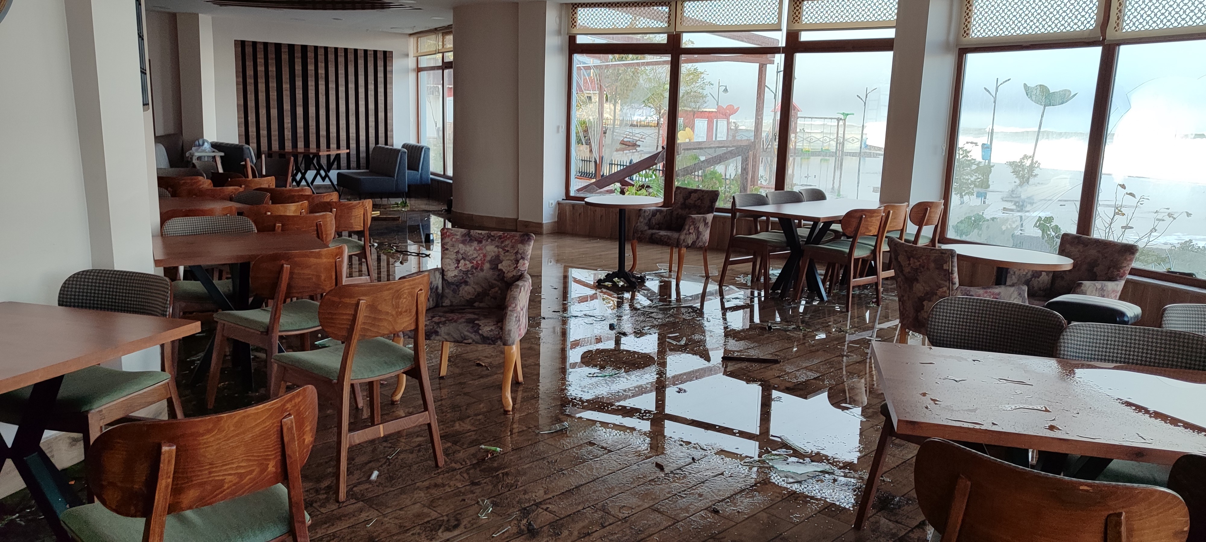 Öte yandan, etkili olan şiddetli fırtına sırasında oluşan dev dalgalar sahili dövdü. Sahilde bulunan kafelerde maddi hasar meydana geldi.
