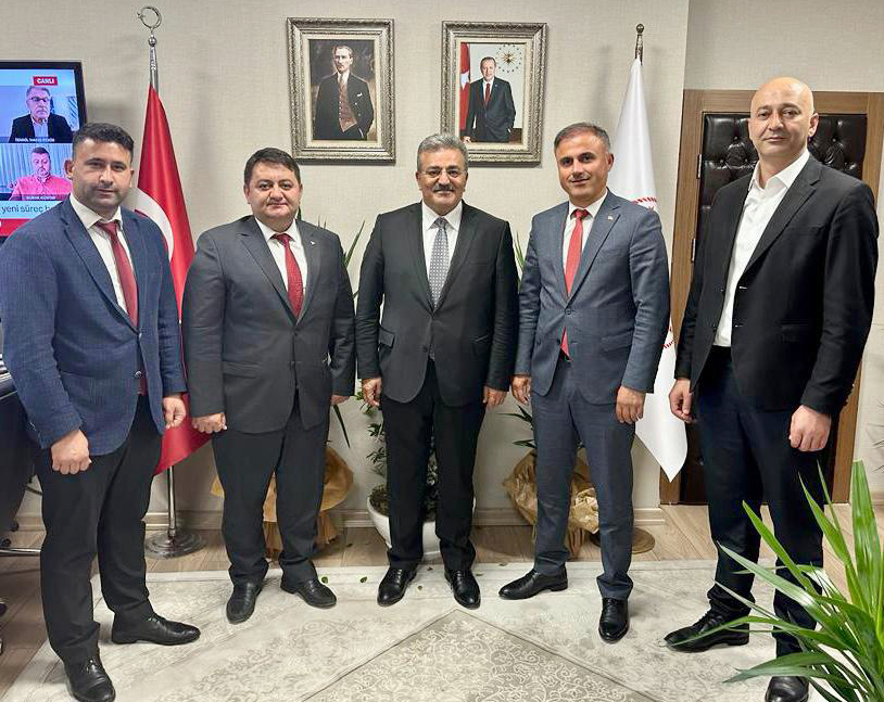 GMİS Genel Başkanı Hakan Yeşil, Genel Başkan Yardımcısı İsa Mutlu, Genel Sekreter Yener Arslanbuğa, Genel Mali Sekreter Yalçın Yiğit, Çalışma Bakan Yardımcılığı görevine yeni atanan Av. Ahmet Aydın’ı ziyarette de Aydın’a başarı ve hayırlı olsun dileğinde bulundular.