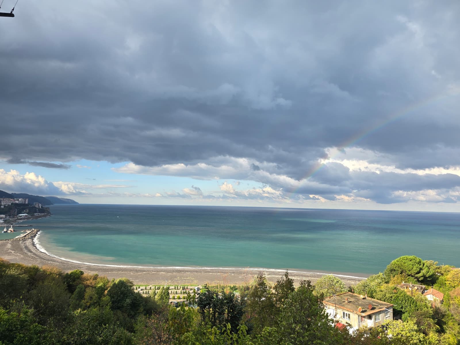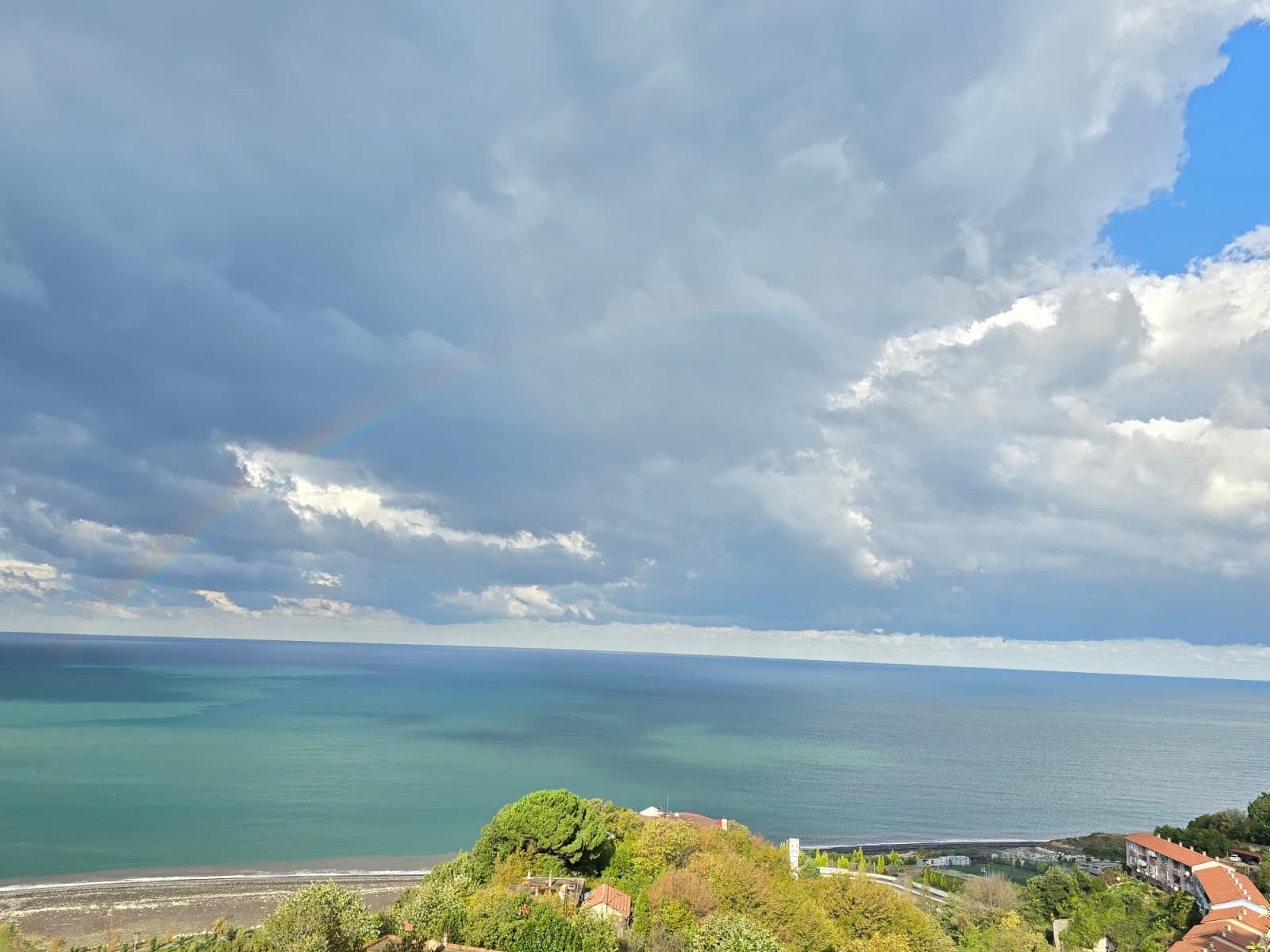 Hortumlar ve gökkuşağı bir zaman sonra gözden kaybolurken sahil boyunca denizin üzeri yağmur sonrası derelerden gelen çamurlar sebebiyle sarı rengi aldı.