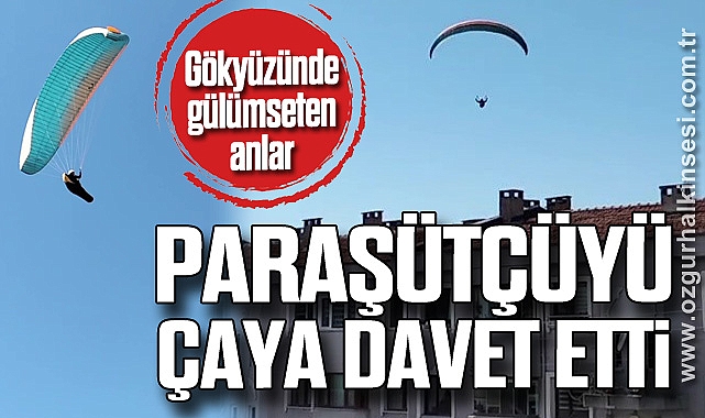 Gökyüzünde gülümseten anlar, paraşütçüyü çaya davet etti