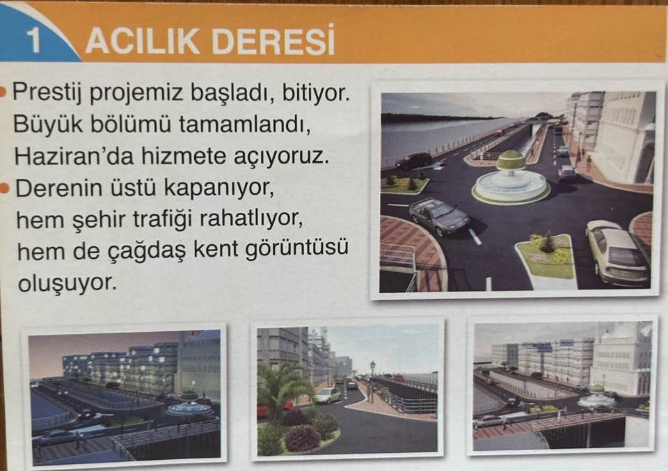 31 Mart 2009 tarihinde görevimiz sona erdiğinde dere üstü kapatma çalışmaları henüz tamamlanmamıştı. Ancak sonrasında planlanan trafik organizasyonu yeni belediye yönetimi( CHP ) döneminde uygulanmadı.