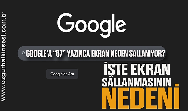 “Google’a 67 yazınca ekran neden sallanıyor?” sorusu, son günlerde internet kullanıcılarının en çok araştırdığı başlıklar arasında yer alıyor. Arama çubuğuna yalnızca iki rakam girilmesiyle ortaya çıkan bu sıra dışı hareket, kullanıcıları hem şaşırtıyor hem de eğlendiriyor. Sosyal medyada paylaşılan kısa videolar ve yorumlar ise konunun hızla yayılmasına katkı sağladı.