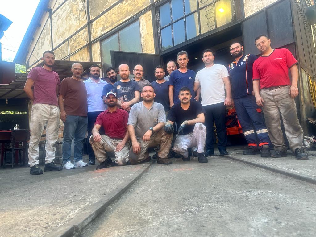 Genel Maden İşçileri Sendikası (GMİS) Genel Sekreteri Yener Arslanbuğa, iş makineleri servisini ziyaret ederek işçileri kutladı. Maden işçisinin her zaman kurumuna sahip çıktığını ifade eden Arslanbuğa, “Kozlu’da 1992 yılında çok büyük bir facia yaşayarak 263 maden işçimizi şehit verdik. Bu acı bizleri derinden yaralarken acısını hala yaşamaktayız. O grizu faciasında maden ocağımızda büyük zarar gördü. Makinelerimiz kullanılamaz hale geldi. Delici ve yükleyici iki makinamızda hurdaya ayrılan makinalardan biriydi. Bu iki makine 31 yıldır atıl vaziyette kurumda durmaktaydı. Maden ocağımızda bu makinalara her zaman ihtiyaç duyulduğu için iş makineleri servimiz büyük bir çalışmaya girdi. İki makine, atölyeye getirilerek uzun süren çalışmalar sonucu üretime kazandırıldı. Böylece kurumumuz milyonlarca liralık yükten kurtulmuş oldu. İşçilerimizi kutluyorum. Bu kurum bizim hepimizin. Maden işçileri her zaman kurumuna sahip çıkmıştır ve çıkmaya devam edecektir. Emeği geçen iş makineleri servis şefimiz Muammer Çakır ve ekibini tebrik ederim.” dedi.