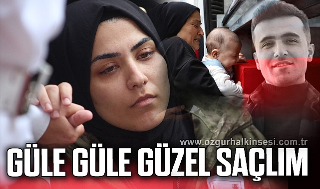 6 aylık bebeği Mehmet Ali Sezer ile Uzun Mehmet Camisine gelen şehit eşi Aleyna Sezer, donuk bakışlarla eşinin Türk Bayrağına sarılı naaşına son kez bakıp, “Güle güle güzel saçlım” diyerek ağıt yaktı.