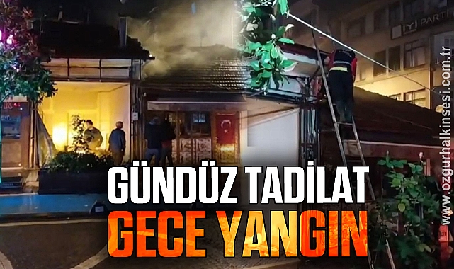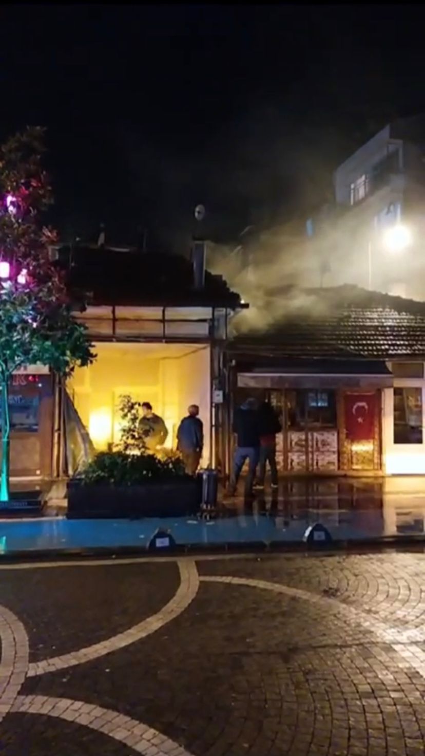 Gece saatlerinde yaşanan olayda gündüz tadilat yapıldığı öğrenilen börekçide saat 22.30 sularında çatı yangını çıktı.