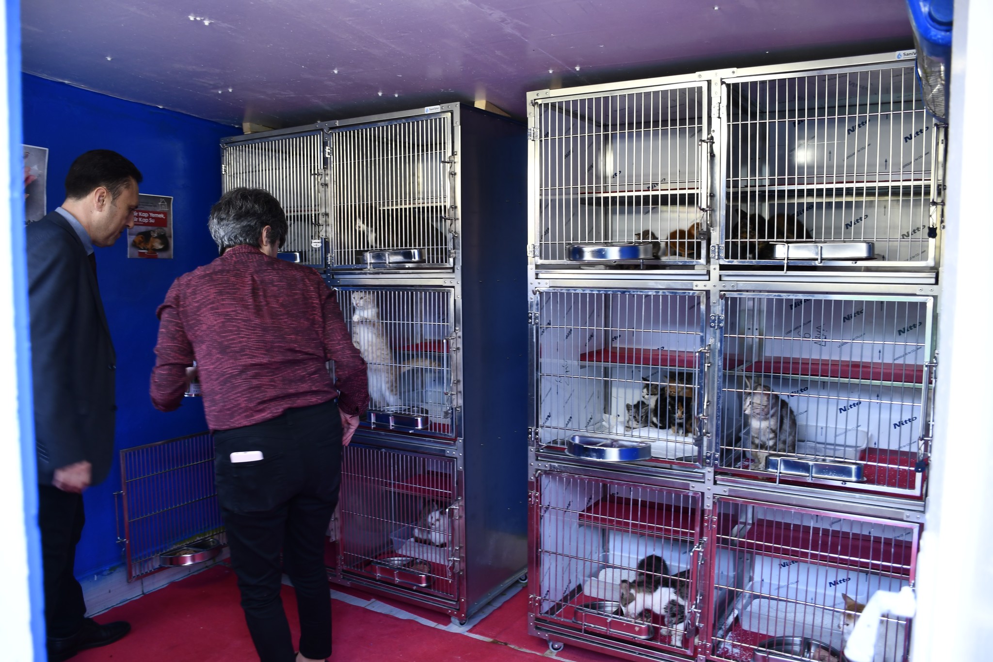 Veteriner İşleri Müdürü Erdal Terzi, Veteriner hekim Özgür Fahrettin Coşgun, Gönülden Hayvansevenler Derneği Başkanı Belgin Alcan ve yönetimi kedileri yeni kafeslerine yerleştirerek mamalarını birlikte verdiler ardından yeni kurulacak bakım merkezinde incelemelerde bulundular.