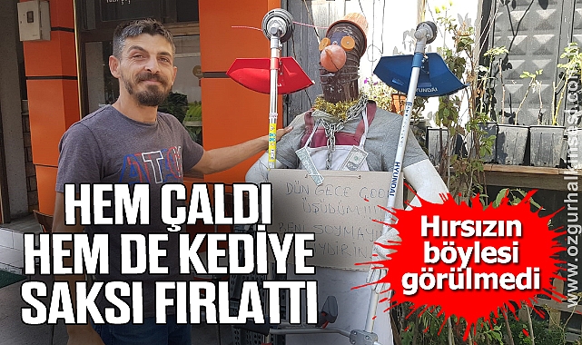 Hemen güvenlik kamerası görüntülerini izleyen İncebacak, cansız mankenin üzerindeki kıyafetlerin gece saatlerinde bir kişi tarafından çalındığını fark etti. Kamera kayıtlarda, iş yerinin önüne gelerek çevreyi kontrol eden bir kişinin, cansız mankenin üzerindeki kıyafetleri alarak giydiği ve bölgeden uzaklaştığı yer alıyor. Görüntülerde ayrıca şahsın ayrıca kediye de saksı attığı görülüyor.