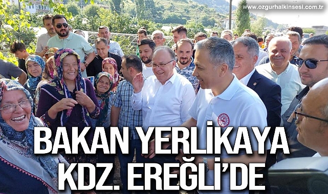 Bir dizi ziyaret ve incelemelerde bulunmak üzere Zonguldak'a gelen İçişleri Bakanı Ali Yerlikaya, çalışmalarının ardından Ereğli'ye geldi. Bakan Yerlikaya'yı burada Zonguldak Valisi Mustafa Tutulmaz, AK Parti Zonguldak Milletvekilleri Muammer Avcı, Ahmet Çolakoğlu, Saffet Bozkurt, Kdz. Ereğli Kaymakamı Mehmet Yapıcı, Karadeniz Bölge ve Garnizon Komutanı Tuğamiral Niyazi Uğur, İlçe Jandarma Komutanı Jandarma Üsteğmen Ali Akca, İlçe Emniyet Müdürü Hasan Ünlü, AFAD Başkanı Yunus Sezer, AK Parti Zonguldak İl Başkanı Mustafa Çağlayan, İl Özel İdare Genel Sekreteri Ahmet Karayılmaz, eski AK Parti Zonguldak Milletvekili Fazlı Erdoğan, sivil toplum örgütü temsilcileri, muhtarlar ile birlikte kalabalık topluluk karşıladı.