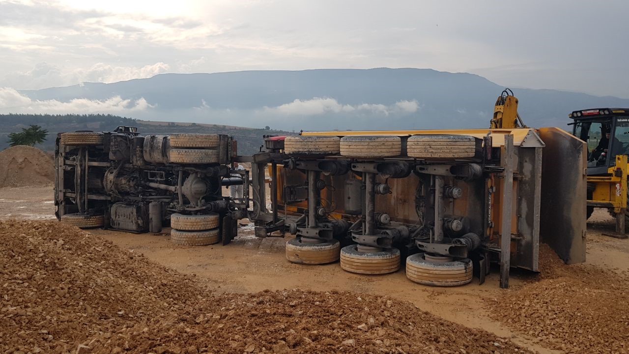 İkinci kaza, Safranbolu Akçasu Mahallesi Sokak Hayvanları Barınağı mevkiinde meydana geldi. İsmi öğrenilemeyen sürücü idaresindeki 78 AAB 694 plakalı hafriyat kamyonu, yüklü olan çakılı boşalttığı sırada kontrolden çıkarak devrildi. Sürücü kazayı yara almadan atlatırken ihbar üzerine olay yerine polis ekipleri sevk edildi.