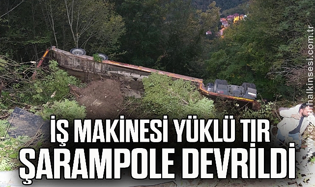 Kastamonu’nun Bozkurt ilçesinde iş makinesi yüklü tırın şarampole devrildiği kazada sürücü yaralandı.