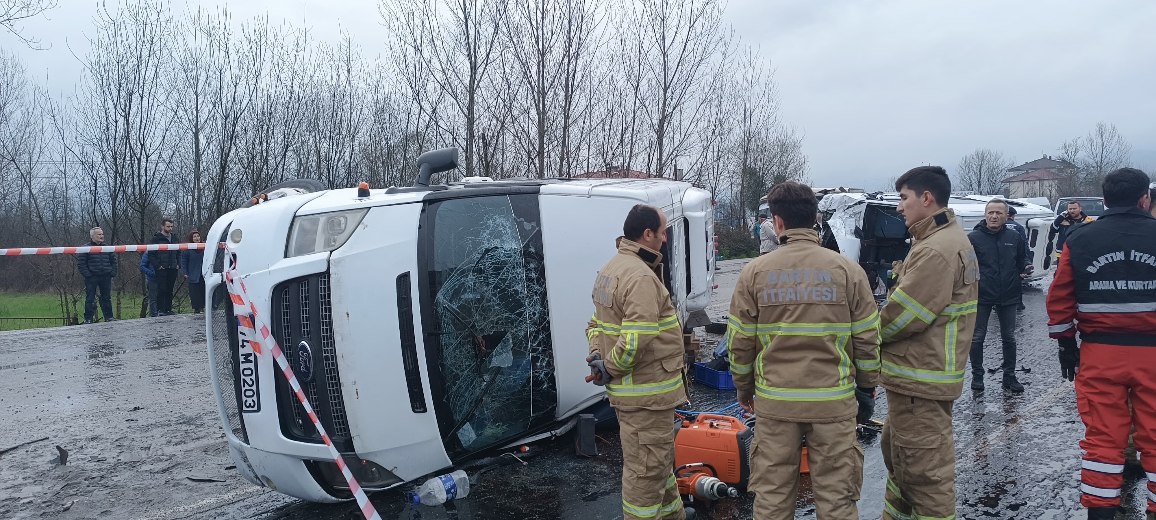 Bartın Kurtköy mevkisinde peş peşe Organize Sanayi Bölgesine seyir halinde olan Necmi Gökalp yönetimindeki 74 M 0203 plakalı minibüsle, Erol Arslan yönetimindeki 74 M 0469 plakalı minibüs çarpıştı. Çarpışmanın ardından her iki araç da savrularak devrildi. Feci kazada servis sürücüsü olduğu öğrenilen bir kişi hayatını kaybederken, ilk belirlemelere göre araçlarda bulunan 15 kişi yaralandı. Yaralılar, olay yerine çağrılan ambulanslarla hastanelere kaldırıldı.