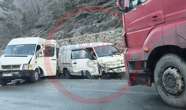 Zonguldak Yayınlanma: 02 Mart 2026 - 07:52 İŞTE KAZA YERİNDEN İLK FOTOĞRAFLAR Zonguldak–Ankara kara yolunda, Sapça Tüneli mevkiinde etkili olan yoğun buzlanma faciaya yol açtı. Aşırı kayganlaşan yolda aralarında madencileri taşıyan işçi servisinin de bulunduğu 7 araç birbirine çarparak durabildi. Zonguldak 02 Mart 2026 - 07:52 Yorumlar Yazdır A Büyüt A Küçült Yorumlar Zincirleme kazanın ardından olay yerinden ilk görüntüler ortaya çıktı. İşte kaza anından ilk fotoğraflar… # Sapça Tüneli# kaza# zincirleme kaza# Zonguldak EDİTÖR Merve Hasanoğlu YORUMLAR adlı kullanıcıya cevap x Gönder İlginizi Çekebilir Zeybek ve Aytekin Zonguldak Belediyesi'nde EMİRCAN İLERİ TAHLİYE OLDU Atık ilaçlar için protokol imzalandı Eğitim-Sen’den Zonguldak’ta Anlamlı Çağrı: Son Haberler Zeybek ve Aytekin Zonguldak Belediyesi'nde EMİRCAN İLERİ TAHLİYE OLDU Atık ilaçlar için protokol imzalandı Eğitim-Sen’den Zonguldak’ta Anlamlı Çağrı: Vali Hacıbektaşoğlu güvenlik toplantısına katıldı Zonguldak İlçeleri Alaplı Çaycuma Devrek Gökçebey Karadenizereğli Zonguldak Hakan Yeşil de kaza yaptı Hakan Yeşil de kaza yaptı