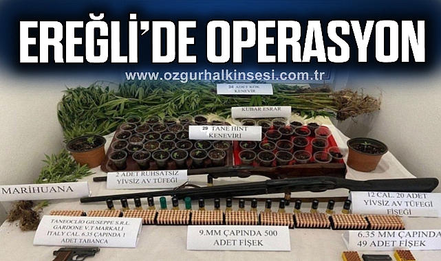 Adli Makamlardan alınan arama kararına istinaden icra edilen operasyonda; 34 kök kenevir bitkisi, 2 adet marihuana bitkisi, 29 adet hint keneviri fidesi, 60 gram kubar esrar, 1 adet ruhsatsız tabanca, 549 tabanca fişeği, 2 adet ruhsatsız av tüfeği, 20 adet av tüfeği fişeği ele geçirildi.