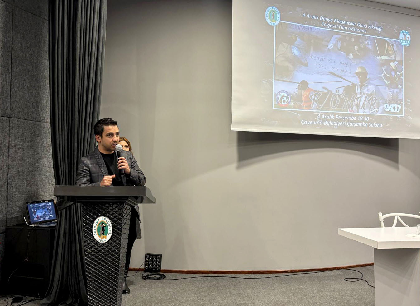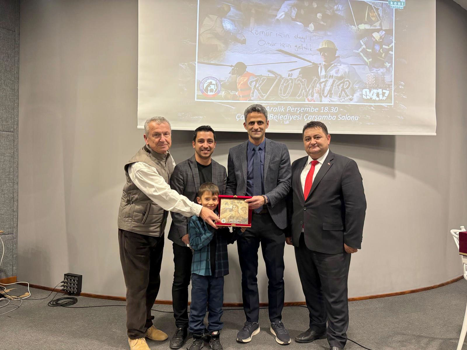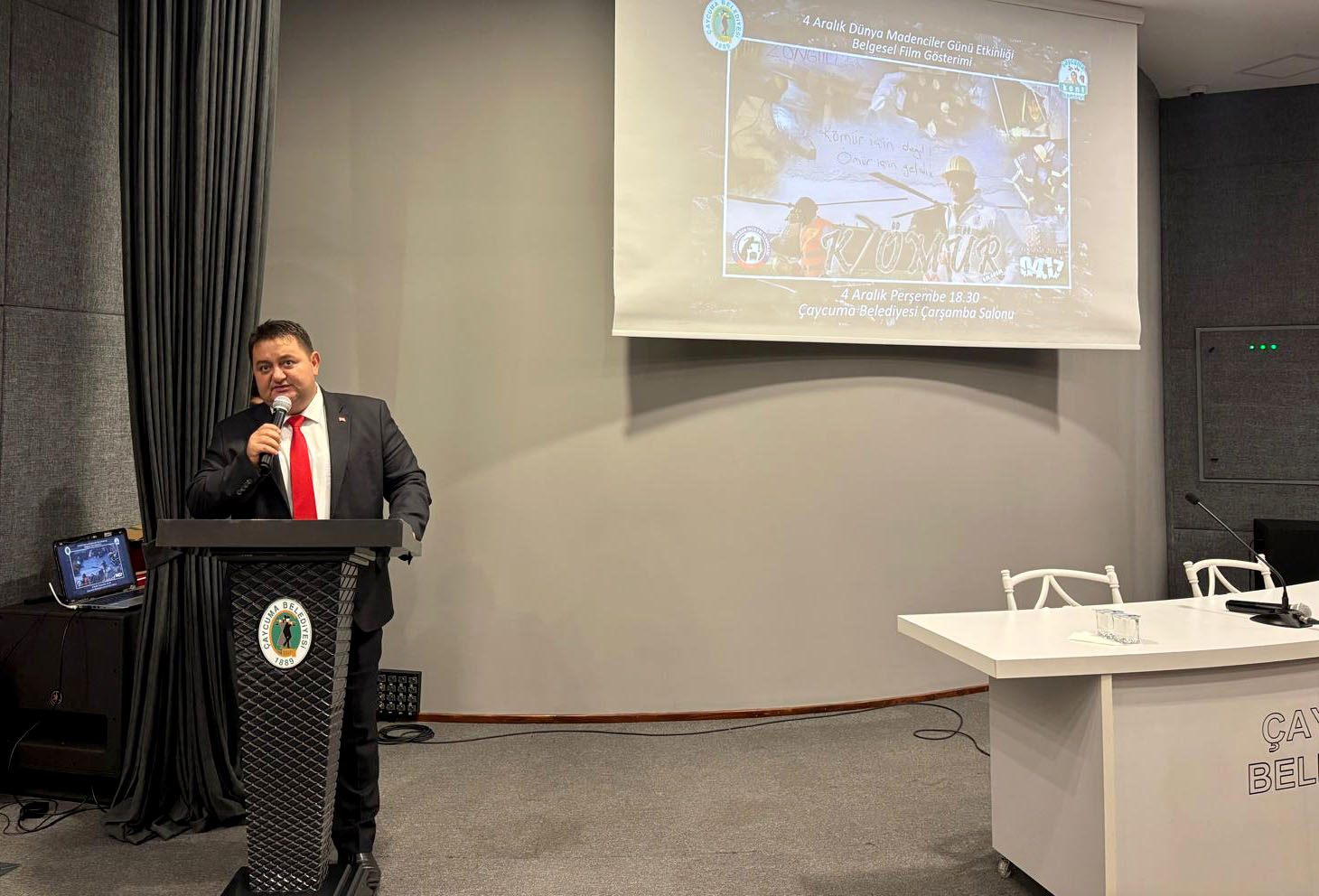 Çaycuma Belediyesi ve Çaycuma Kent Konseyi’nin daveti üzerine ‘K-ÖMÜR’ belgeseli, 4 Aralık Dünya Madenciler Günü’nde Çaycuma’da gösterildi. Çaycuma Belediyesi Çarşamba Salonu’nda gerçekleşen gösterime, Çaycuma Kaymakamı Adem Kaya, Çaycuma Belediye Başkanı Bülent Kantarcı, GMİS Genel Başkanı Hakan Yeşil, Çaycuma Kent Konseyi Başkanı İsmail İnam, CHP İlçe Başkanı Fahri Diler, Çaycuma Esnaf Kefalet Odası Başkanı Hayri Kandemir, Çaycuma ve Çevre Köylerini Kalkındırma ve Güzelleştirme Derneği Başkanı Savaş Çiloğlu, Eğitim-Sen Çaycuma Temsilcisi İsmet Akyol, hayırsever avukat Ali Osman Odabaş, vatandaşlar ve maden işçileri katıldı. ‘K-ÖMÜR’ belgeseli ile 6 Şubat 2022 Kahramanmaraş depreminde maden işçilerinin ve kurtardıkları depremzedelerin yaşadıklarını izleyenler duygu dolu anlar yaşadı. Belgesel yönetmeni ve GMİS Basın ve Halkla İlişkiler görevlisi Gürkay Gündoğan, filmin yapım aşaması ve süreci hakkında izleyicilere bilgiler verdi.YEŞİL: ‘EKRANA YANSIMAYAN ACI HİKAYELER HALEN BELLEKLERİMİZDE’GMİS Genel Başkanı Hakan Yeşil, depremin ardından maden işçilerinin bölgeye nakli konusunda TTK ve bakanlıklarla birlikte arka planda yoğun bir çalışma yaptıklarını anlatarak, “Bu belgeselimiz orada neler yaşandığını anlatmak adına bizler için çok önemli. 4 bine yakın maden işçimizin deprem bölgesinde yaşadıklarının ekrana yansıyanlarının yanı sıra birçok acı hikayede bizim belleklerimizde duruyor. Böyle üyeleri olan sendikanın genel başkanı olmakta gurur ve onur duyuyorum. Emeği geçenlere teşekkür ediyor, Çaycuma Belediye Başkanı Bülent Kantarcı’ya bu anlamlı etkinlik için teşekkür ediyorum.” dedi.KANTARCI TEŞEKKÜR ETTİDepremin ardından yaşanan acı kayıpların nedenleri üzerine bir konuşma yapan Çaycuma Belediye Başkanı Bülent Kantarcı ise, “Deprem ülkesinde yaşadığımızı herkes biliyor ama bunun önlemleri konusunda pek bir şey yapılmıyor. Yeni yapılarda biraz daha önlemler alınsa da özellikle eski yapılarda sorunlar daha fazla. Depremin ardından yaşanan acı kayıplar yapılan inşaatların deprem yönetmeliğine uyulmamasından kaynaklanıyor. Belgeselde izlediğimiz gibi acı olayları bu nedenle yaşıyoruz. İzlerken duygulandık, gözlerimiz doldu. Zaman zaman gözlerimi kapatarak izleyebildim. Belgeseli orada yaşanan acıları ve maden işçilerimizin yaptığı kahramanlıkları anlatması adına çok anlamlı buldum. Bu anlamlı projeyi gerçekleştirdiği için Genel Başkan Hakan Yeşil’e ve Gürkay Gündoğan’a teşekkür ediyorum.” dedi.