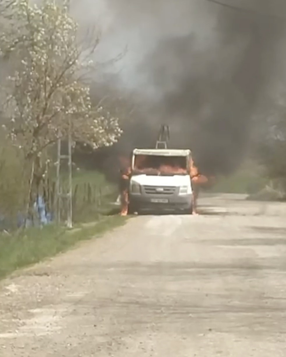 Kastamonu'nun İhsangazi ilçesinde park halindeyken alevlere teslim olan kamyonet kullanılmaz hale geldi.