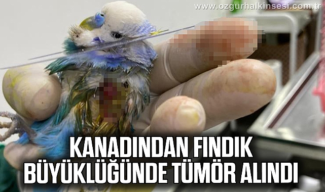 Zonguldak’ta iki buçuk yaşındaki muhabbet kuşunun kanadından fındık büyüklüğünde tümör alındı.