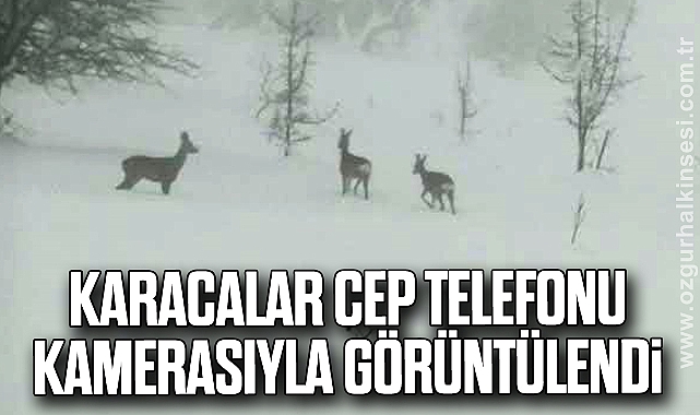 Karabük’ün Eflani ilçesinde karla kaplı arazide gezinen 3 karaca cep telefonu kamerası ile görüntülendi.