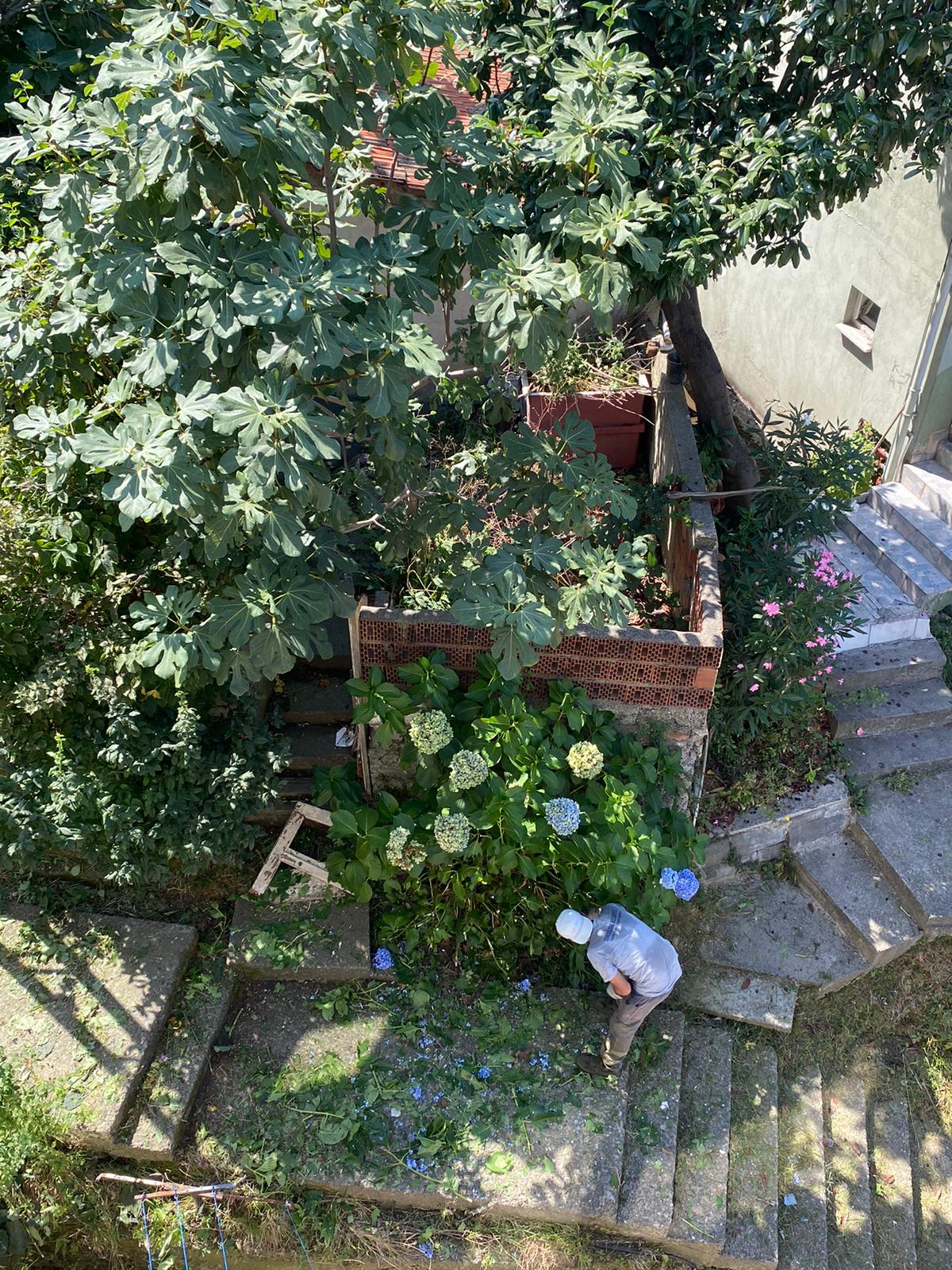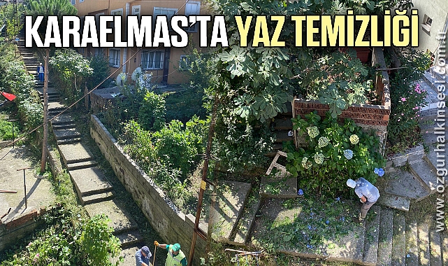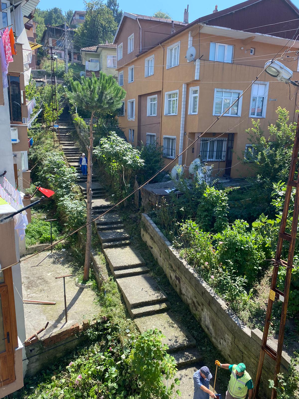 Park ve Bahçeler Müdürlüğü ile Temizlik İşleri Müdürlüğü ekipleri iki gündür Karaelmas Mahallesinin ara sokaklarında ve merdivenlerde temizlik ve budama yapıyor.