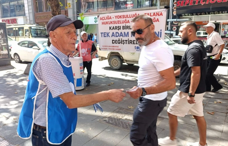 Sol Parti Zonguldak İl Başkanı İsmail Yıldız ve yönetim kurulu üyeleri, düzenlenecek yürüyüş ve basın açıklamasına katılım çağrısı yapmak amacıyla Gazipaşa Caddesi'nde broşür dağıttı. Vatandaşlara davette bulunan İl Başkanı Yıldız, mevcut siyasi iktidara karşı vatandaşlara “Birleşelim, mücadeleyi büyütelim” mesajı verdi.EMEKLİ, ASGARİ ÜCRETLİ VE İŞÇİLER SEFALETE MAHKÛMParti tarafından yapılan açıklamada, milyonlarca emeklinin, asgari ücretlinin, işçilerin ve kamu emekçilerinin sefalet ücretleriyle açlığa ve yoksulluğa sürüklendiği vurgulandı. Artan işsizlik ve yükselen enflasyonun toplumun her kesimini olumsuz etkilediği belirtilirken, “Evlerde tencere kaynamıyor” ifadesi kullanıldı.
