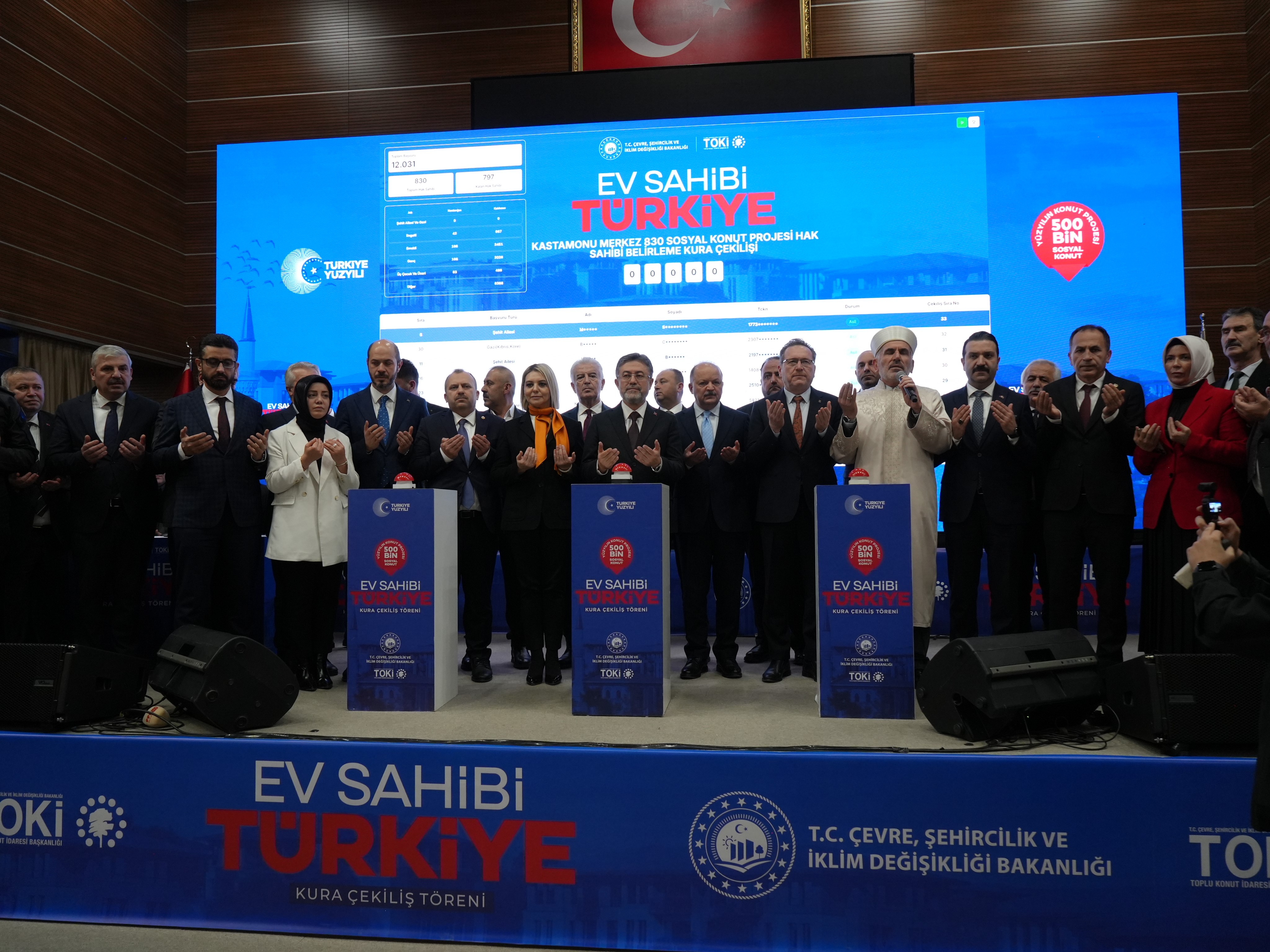 Kastamonu'da Türkiye Toplu Konut İdaresi (TOKİ) tarafından 500 Bin Sosyal Konut Projesi kapsamında inşa edilecek 2 bin 380 konutun hak sahiplerinin belirlenmesi için düzenlenen kura töreni, Tarım ve Orman Bakanı İbrahim Yumaklı'nın katılımıyla gerçekleştirildi. Kaan Talip Tığlı Konferans Salonu'nda düzenlenen törene vatandaşlar yoğun ilgi gösterdi.