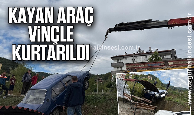 Olay yerine gelen vinç yardımıyla araç bulunduğu yerden dikkatli bir şekilde çıkarılarak güvenli bölgeye alındı.