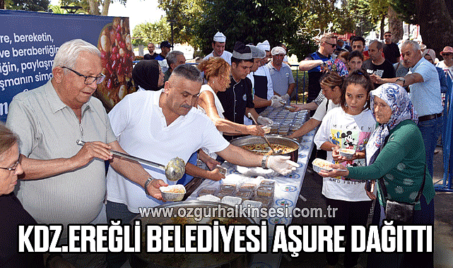 3 bin kişilik aşure dağıtımına, Kdz. Ereğli Belediye Başkanı Halil Posbıyık eşi Kadın Gücü Koopretifi Başkanı Neriman Posbıyık, Belediye meclis üyeleri, daire müdürleri, mahalle muhtarları, sivil toplum örgütü temsilcileri katıldı.