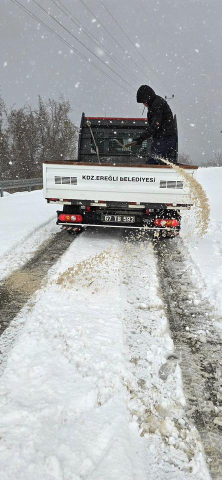 Kdz. Ereğli Belediyesi ekipleri, etkili olan kar yağışına karşı tüm birimleriyle kesintisiz sahada çalışmalarını sürdürüyor.