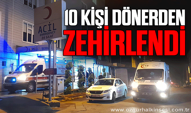 Akşam saatlerinde çarşı merkezinde bir dönercide yemek yiyen müşteriler yemeğin ardından mide bulantısı ve kusma şikayetleri ile kendi imkanları ile ilçedeki özel hastanelere başvurdu. zehirlenme şüphesi ile tedavi altına alınan 10 kişinin hayati tehlikesinin olmadıgı öğrenildi. Polisin olayla ilgili araştırması devam ediyor. Öte yandan İlçe Sağlık Müdürlüğü ekiplerinin yiyeceklerden numune aldığı ve sonucun beklendiği öğrenildi.