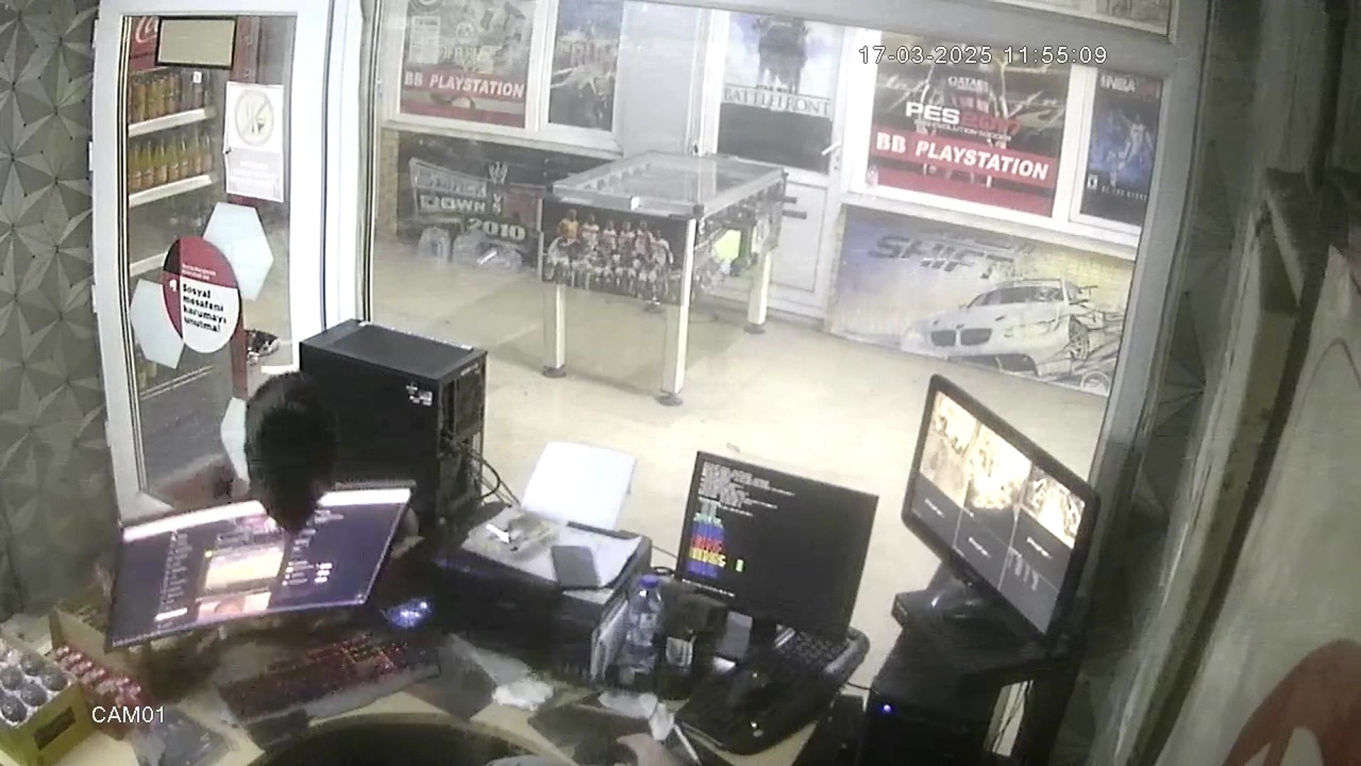 Karadeniz Ereğli ilçesinde Aydanur Aydın; işlettiği internet kafede beslediği kediyle bir süre oynadı. Ardından masanın üzerine çıkan kedi, oyunu devam ettirirken yere atlamak istedi. Ancak yönünü şaşıran kedi, monitörün üzerine atlayınca birlikte masanın üzerine devrildi. O anlar ise işyerinin güvenlik kamerasına yansıdı.