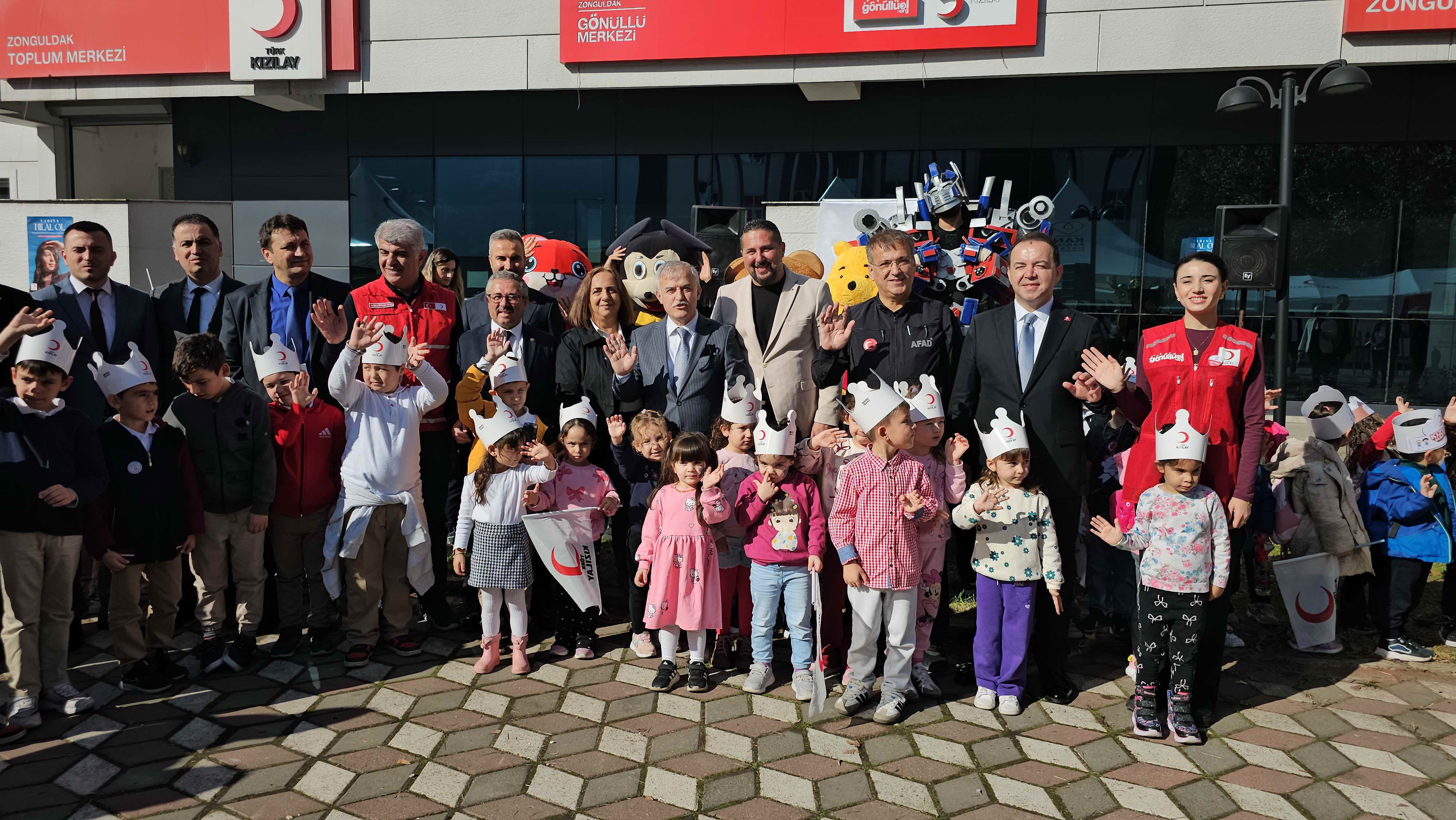 Kızılay Kan Merkezi binası önünde yapılan törene Zonguldak Vali Yardımcısı Muammer Balcı, Zonguldak Belediye Başkan Yardımcısı Hatice Alın, Kilimli Belediye Başkanı Kamil Altun, AKP Zonguldak İl Başkanı Mustafa Çağlayan, CHP Zonguldak İl Başkanı Devrim Dural, ilgili daire müdürleri ve çok sayıda vatandaş katıldı. Kızılay İl Başkanı Kürşat Yağız burafa yaptığı konuşmada katkı sağlayan herkese teşekkür ederken hep birlikte pasta kesimi yapıldı. AFAD deprem similasyon TIR’ının yer alacağı etkinlik alanında üç gün boyunca öğrencilere afet anında doğru davranış biçimlerini deneyimleme fırsatı sunulacak.