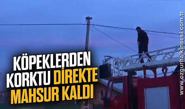 Olay, ilçeye bağlı Yazıköy köyünde meydana geldi. Sahipsiz köpeklerin kovaladığı kedi elektrik direğine çıktı.