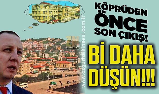Belediye Başkanı Sayın Ömer Selim AlanGüzel olan hatırda kalır, kötü olan akılda kalır, hatır bilen unutulmaz, yanlışın telafisi olmazMaziye bi bakıverGeçmişte yapılan yanlışları düşün, telafisi olmayan hataları sorgulaFilm şeridi gibi gözünün önünden geçirBi daha düşün!!!Çağdaş kentleşme hamleleriHayatı kolaylaştıran hizmetler sizinle baki kalırYapılan güzel şeyler anılacak, sizinle yaşayacak, alkışlanacakBütün bu kargaşanın içinde gözler hep tarihin izlerini arayacakOnlarda sizinle yaşayacakSizinle anılacakBi daha düşün!!!Fevkani Köprüsünün altını boşaltAlçak bir oturak bulDakikalarca seyretDemirlere, lamalara, kıvrımlara bakAltından gelip geçen insanları seyretSohbet etBi daha düşün!!!Belki içinde bir ışık doğarAklından film şeridi geçerDüşünürsünBi daha düşünürsünÇağdaş kentleşme kadar tarihsel belleğinde yaşatılmasıYarım asır sonra kent yıllığında Fevkani Köprüsünün altında isminin anılmasıBelki seni daha mutlu ederBi daha düşün!!!Zonguldak Nostalji-Yüksel Yıldırım-19 Şubat 2022#FevkaniKöprüsü