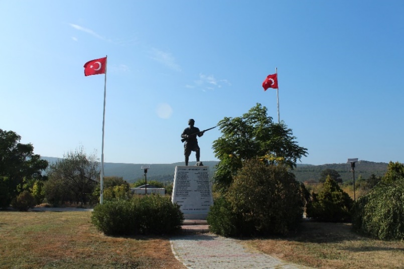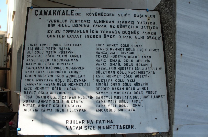 Sol tarafında parkın içinde, bayrakların arasında Mehmetçik Anıtını ve altında Çanakkale Savaşında bu köyden şehit olanların isimlerini görüyorsunuz. Köy meydanında da yer alıyor şehit olan Mehmetçiklerimizim ismi.