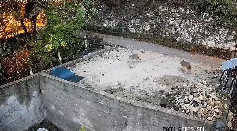 Olay merkeze bağlı Bulak Köyünde meydana geldi. Aç kalan 4 kurt ve 3 ayının farklı tarihlerde aynı evin önünden geçtiği anlar güvenlik kamerasına yansıdı.