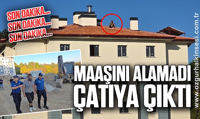 Zonguldak’ın Ereğli ilçesinde, maaşını alamadığını öne süren işçi, polis ekiplerinin ikna çabası sonucu çıktığı çatıdan indirildi.