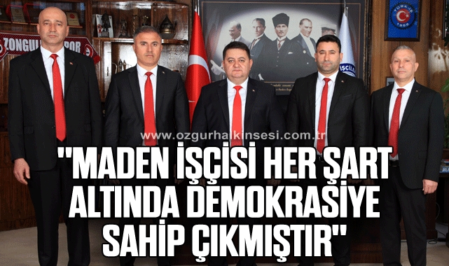 Maden işçisi, her şart altında demokrasiye sahip çıkmış ve savunmuştur. Demokrasiye ve milli iradeye her zaman ve her şart altında sahip çıkmaya devam edeceğimizi bir kez daha ifade ediyoruz.”
