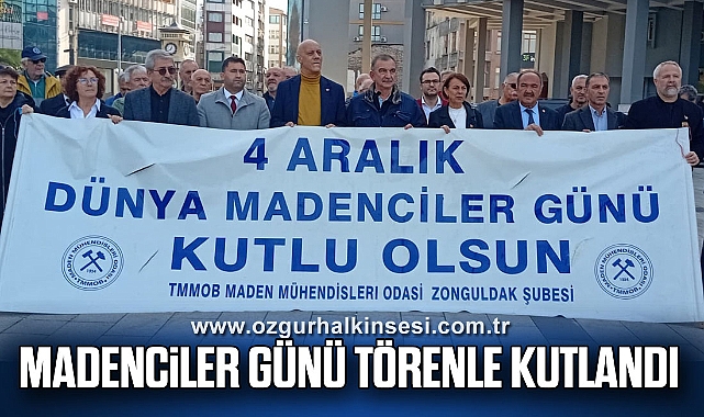 Haber: Cevat Baran ÇAYDAŞ Valilik önünde düzenlenen törende, Atatürk Anıtı'na çelenk sunuldu.Maden Mühendisleri Odası Zonguldak Şube Başkanı Doç. Dr. Erdoğan Kaymakçı, törende yaptığı konuşmada, 4 Aralık Dünya Madenciler Günü'nün önemine değindi.Kaymakçı'nın ardından konuşan Genel Maden İşçileri Sendikası (GMİS) Genel Başkan Yardımcısı İsa Mutlu ise, Türkiye Taşkömürü Kurumu'na (TTK) işçi alımı çağrısında bulundu. Mutlu, " Teknoloji ne kadar gelişirse gelişsin enerjinin devamlılığı için madencliğin vazgeçilemez bir unsur olduğunu görüyoruz. TTK'da sayısı hızla düşen maden işçilerimize ilaveler yapılarak ülkemizin etrafından geçtiği bu ateş çemberinden en az etkilenmesi şartıyla devam ettirilmesi için işçi açığının giderilmesi gerekiyor" dedi.Tören, eski CHP Zonguldak İl Başkan Yardımcısı Hüsnü Hazır, şair Ümit İlter'in "Geçit Yok" şiirini okumasıyla sona erdi.