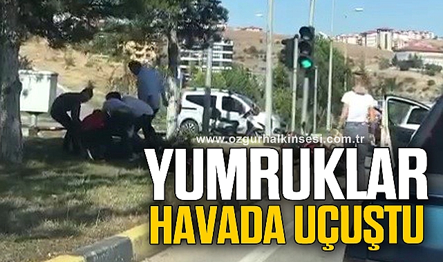 Olay Bulak Kavşağında meydana geldi. Kırmızı ışıkta bekleyen iki motosiklet sürücüsü henüz bilinmeyen bir nedenle birbirine girdi. Yumrukların havada uçuştuğu kavga anı bir vatandaş tarafından cep telefonu kamerasıyla kaydedildi.