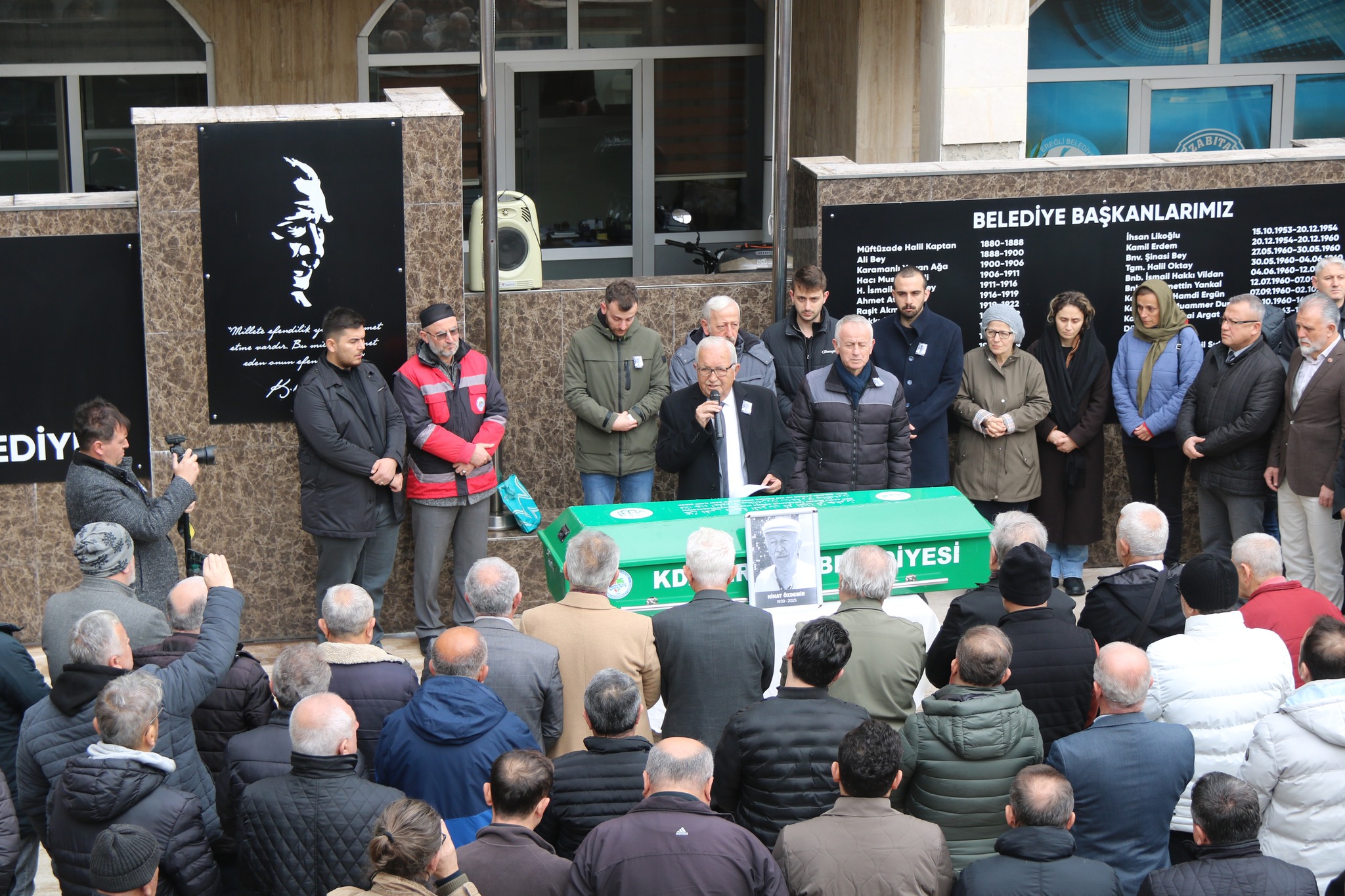 Kdz. Ereğli Belediyesi Destek Hizmetleri Müdürü Etem Özdemir’in babası, önceki dönem belediye meclis üyelerinden, 86 yaşındaki Nihat Özdemir tedavi gördüğü hastanede hayatını kaybetti.1973+1977 ve 1984-1989 yılları arasında 2 dönem belediye meclis üyeliği yapan Özdemir için belediye önünde tören düzenlendi.Törene, Belediye Başkanı Halil Posbıyık, belediye başkan yardımcıları, belediye meclis üyeleri, daire müdürleri, Eğitim Fakültesi Dekanı Prof. Dr. Ali Azar, STK temsilcileri, belediye çalışanları, Özdemir Ailesi ve sevenleri katıldı.Ereğli’de sevilen bir şahsiyeti kaybetmenin derin üzüntüsünü yaşadıklarını belirten Başkan Halil Posbıyık, şunları söyledi;“Trabzon’da dünyaya gelen Nihat Özdemir, ekonomik imkânsızlıklar nedeniyle ilkokul 3. sınıfa kadar eğitim alabildi.Genç yaşta Kdz. Ereğli’ye taşınarak Erdemir’de işçi olarak çalışmaya başladı. Hayatı boyunca emeğinden ve ailesinden asla vazgeçmedi.Geçirdiği bir iş kazasında tek gözünü kaybetmesine rağmen, okumaya ve öğrenmeye olan ilgisini hiçbir zaman yitirmedi.Yetmiş yıllık bir CHP üyesi olarak siyasette aktif rol aldı; Kdz. Ereğli Belediye Meclisi’nde 1973–1977 ve 1984–1989 yılları arasında iki dönem meclis üyeliği yaptı.Bilgisi, tecrübesi ve kararlılığıyla çevresine umut ve ilham veren Nihat Özdemir; ilkelerinden şaşmayan, mücadelesinden vazgeçmeyen duruşuyla tanındı.Nihat abi gerçekten örnek bir insandı. Ereğli halkından da çok seviliyordu. Partililer tarafından da çok büyük saygı görüyordu. Bunların hepsinin şahidiyim. Evlatlarını yetiştirdi. Oğluyla beraber çalışıyoruz. Beraber çalışmaktan da gurur duyuyorum. Torunu da bizde, o da bizimle beraber çalışıyor. Bugün bütün dostları, sevenleri acılı. Allah onu nur içinde yatırsın, Allah rahmet eylesin. Sevgiyle, saygıyla uğurluyoruz.”Özdemir’in naaşı, Belediye din görevlilerinin okuduğu duanın ardından şehir mezarlığına defnedilmek üzere cenaze namazı için Ali Molla camisine götürüldü.
