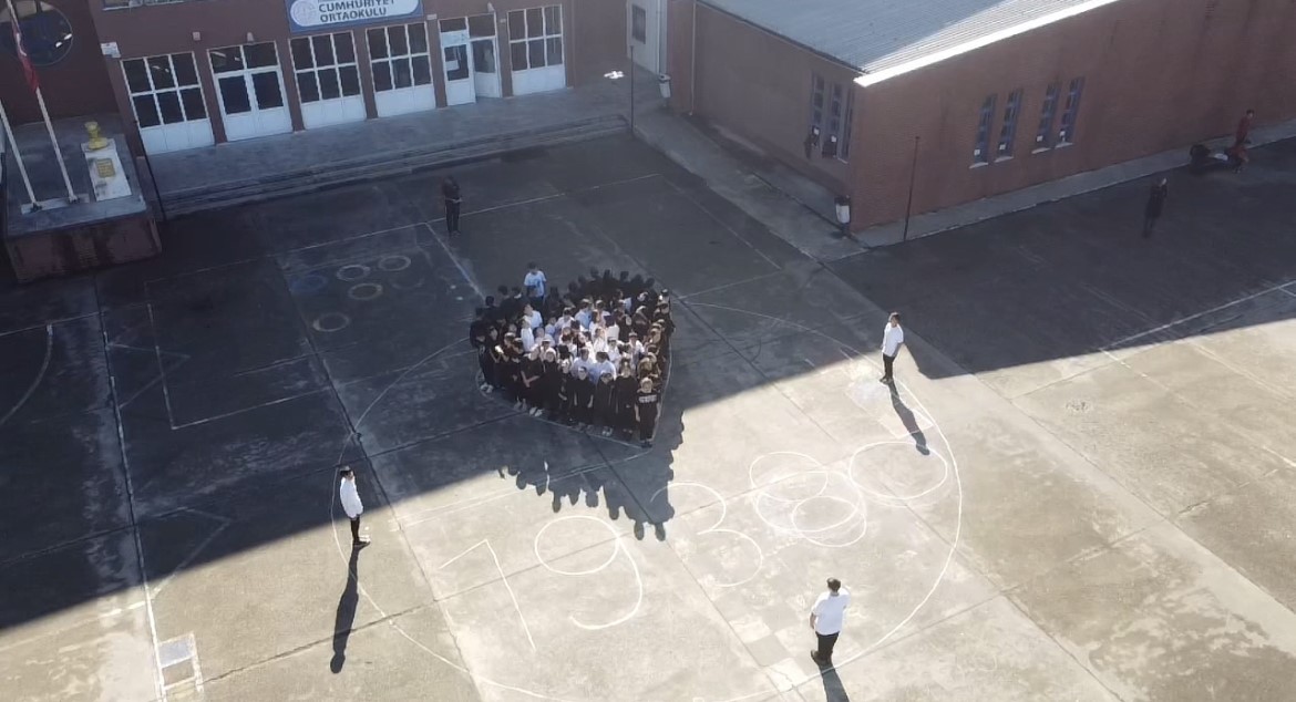 Yaklaşık 123 öğrenci ve 12 öğretmeninin desteğiyle okul bahçesinde, Atatürk'ün vefatının 85'inci yılı dolayısıyla '09.05' ve '1938' koreografisi oluşturdu.