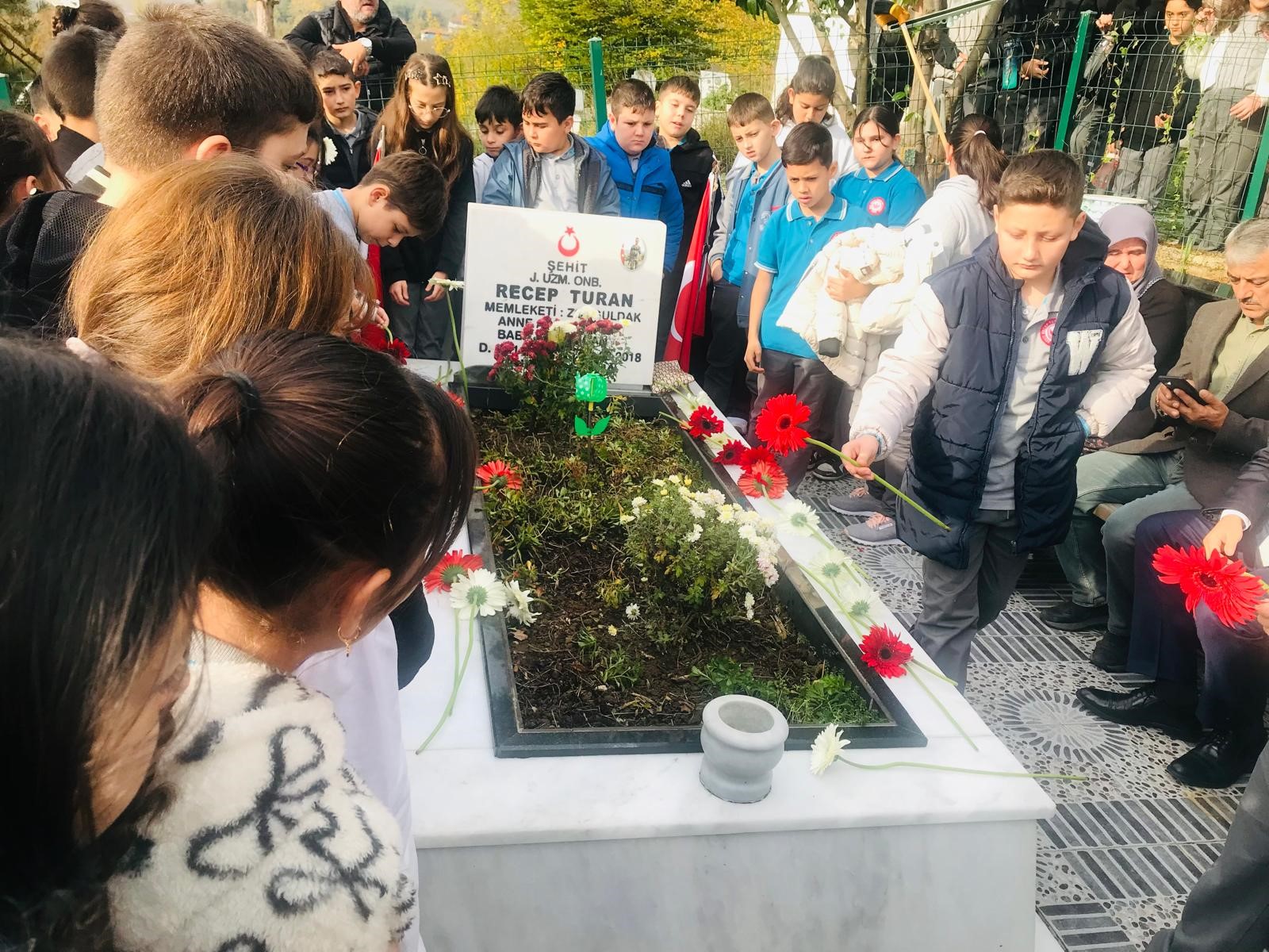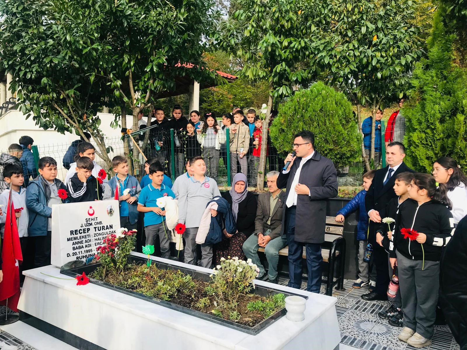 Ziyarete Alaplı Kaymakamı Selçuk Köksal, İlçe Müftüsü Yılmaz Çelik, İlçe Millî Eğitim Müdürü Cevat Çevik, Şube Müdürü Yakup Keleş ile jandarma ve emniyet yetkilileri de katıldı. Kur’ân-ı Kerîm tilavetinin ardından Kaymakam Selçuk Köksal, öğrencilere hitaben yaptığı konuşmada şehitlik makamının önemine dikkat çekti. Daha sonra İlçe Müftüsü Yılmaz Çelik tarafından dua edildi.