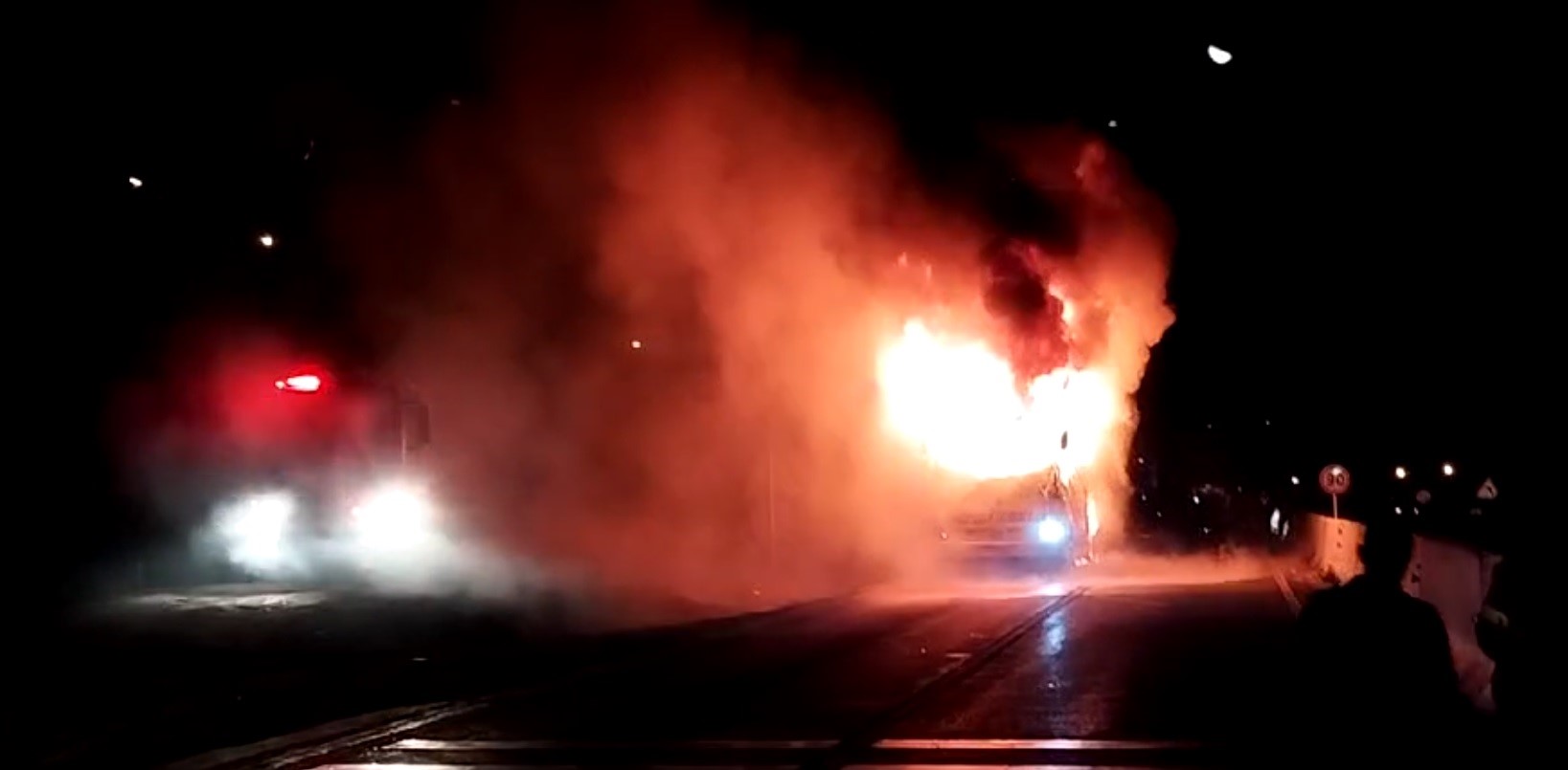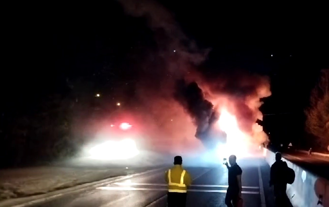 Düzce D100 Karayolu Bolu dağı geçişinde yolcu otobüsü alev alev yandı. Bazı vatandaşlar kovalarla su getirerek yangını söndürmeye çalıştı, o sırada patlamalar meydana geldi.