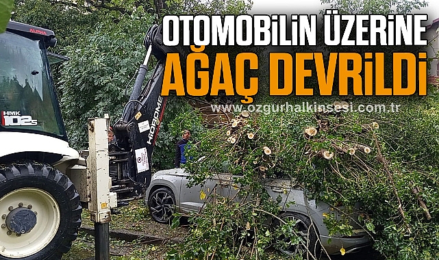 Zonguldak’ın Çaycuma ilçesinde park halindeki bir otomobilin üzerine ağaç devrildi.