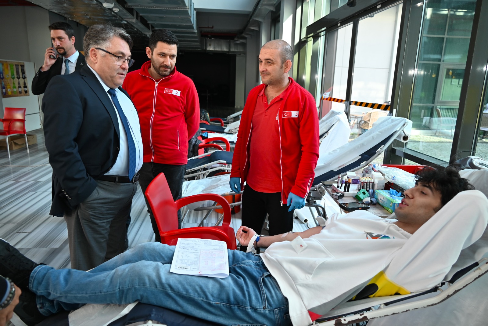 Zonguldak Bülent Ecevit Üniversitesi (ZBEÜ) Rektörü Prof. Dr. İsmail Hakkı Özölçer, Ahmet Erdoğan Sağlık Hizmetleri Meslek Yüksekokulunda (MYO) ZBEÜ ve Zonguldak Türk Kızılayı iş birliğinde düzenlenen kan bağışı organizasyonuna katıldı. Etkinlikte Rektör Özölçer’e, Rektör Yardımcısı Prof. Dr. Servet Karasu, Ahmet Erdoğan Sağlık Hizmetleri MYO Müdürü Prof. Dr. Sibel Koçak ve Sağlık Bilimleri Fakültesi Dekanı Prof. Dr. Emine Yılmaz Can eşlik etti. Organizasyona yoğun ilgi gösteren akademik ve idari personel ile öğrenciler, kan bağışında bulundu.