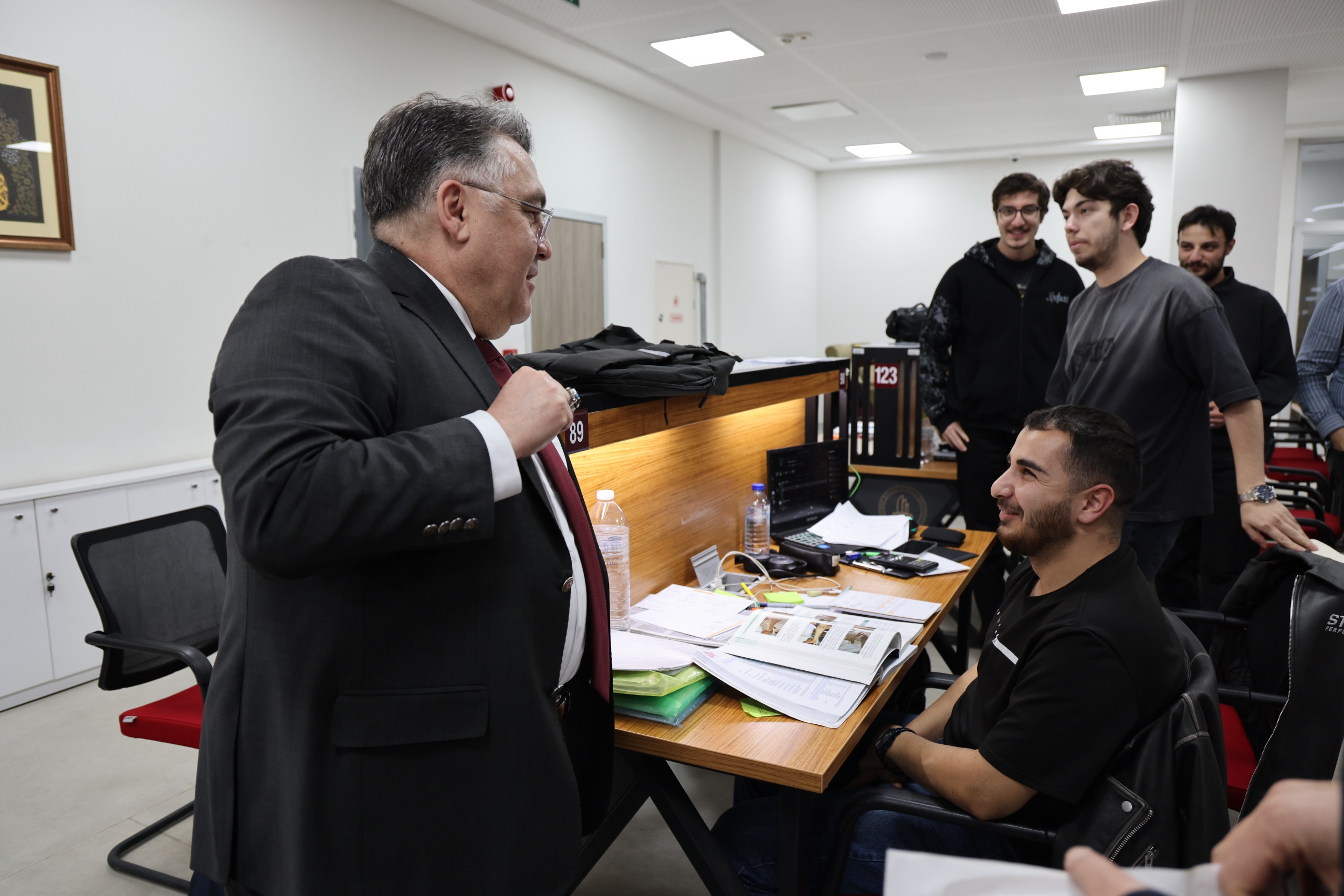 Final sınavları döneminde öğrencilerle bir araya gelen BEUN Rektörü Prof. Dr. İsmail Hakkı Özölçer, kütüphanede ders çalışan öğrencilerle sohbet ederek sınav sürecine ilişkin duygu ve düşüncelerini dinledi. Öğrencilere moral veren Prof. Dr. İsmail Hakkı Özölçer, planlı ve disiplinli çalışmanın akademik başarıdaki önemine dikkat çekti. Ziyaret sırasında üniversite yönetimi olarak öğrencilerin her zaman yanında olduklarını vurgulayan Rektör Prof. Dr. Özölçer, öğrencilerin akademik ve sosyal gelişimlerini desteklemeye yönelik çalışmaların kararlılıkla sürdürüleceğini ifade etti. Öğrencilerin talep ve görüşlerini dinleyen Rektör Özölçer, iletilen geri bildirimlerin üniversitenin sürekli gelişim ve iyileştirme süreçleri açısından son derece kıymetli olduğunu vurguladı.
