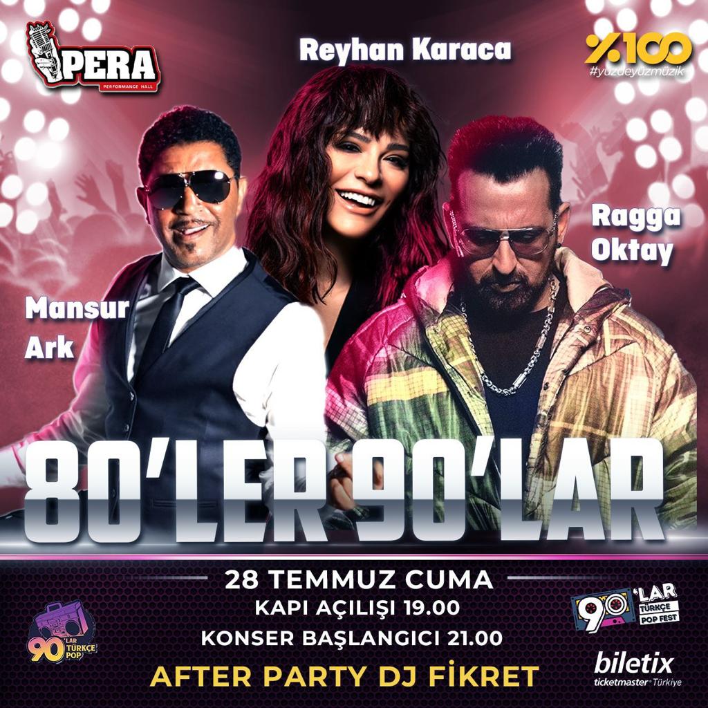 Mansur Ak, Reyhan Karaca ve Ragga Oktay gibi 80 ve 90’lı yıllarda müzik listelerinden düşmeyen isimlerin şarkılarının çalınacağı gecede kapı saat 19.00’da açılacak. 28 Temmuz Cuma günü yapılacak “80’LER 90’LAR” after partide DJ Fikret performansıyla davetlileri coşturacak.