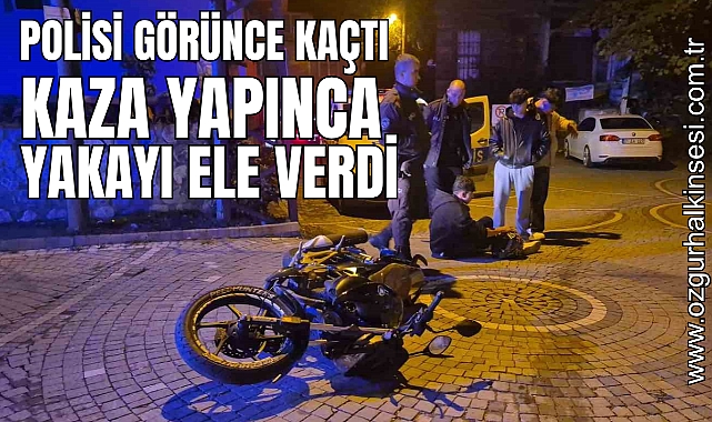Polisi görünce kaçan motosikletli, kaza yapınca yakalandı