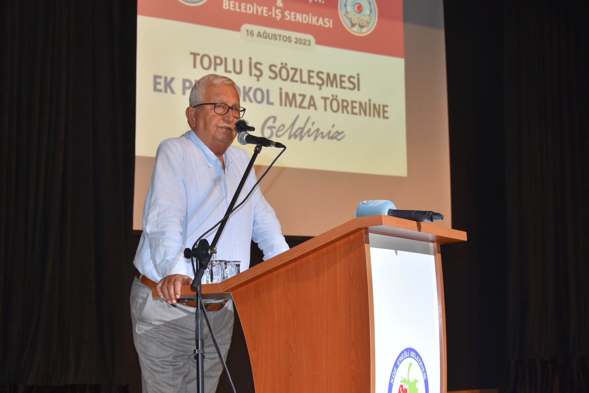 Kdz. Ereğli Belediyesi Personel Limited Şirketi ile Belediye – İş Sendikası arasında “ek protokol” ücret zammı imza töreni düzenlendi. Tören öncesinde saygı duruşu ve İstiklal Marşı okunurken, törene Kdz. Ereğli Belediye Başkanı Halil Posbıyık, , Belediye - İş Sendikası Zonguldak Şube Başkanı Osman Karataş, Başkan Yardımcısı Hasan Aydın, Mali Sekreter Recep Köksal, meclis üyeleri, başkan yardımcıları, daire müdürleri ve işçiler katıldı.