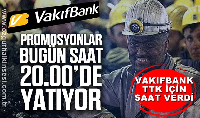 Promosyon ihalesini kazanan VakıfBank, kurum yetkililerine mesai bitiminden sonra 19.00 ila 20.00 arasında Promosyon ücretlerinin yatırılacağını bildirdi. Bilindiği gibi Türkiye Taşkömürü Kurumu’nda(TTK) yaklaşık 9 bin madenciye 99 bin 500 lira yatacak.